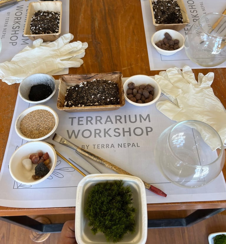Terra Nepal invites students into the captivating world of self-sustaining glass gardens — our Terrarium Workshop, thoughtfully designed to blend education with imagination.