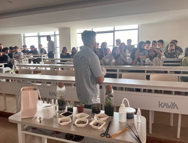 Showcasing how our terrarium workshop is conducted for corporate clients with inquiry form.